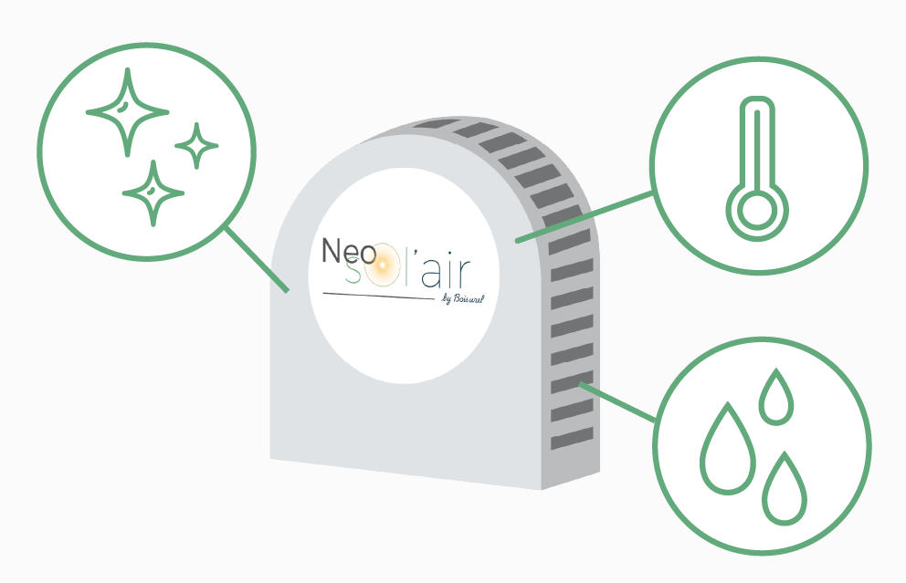 Avec Néo Sol'air, vous chauffez, ventilez et rafraîchissez votre logement en économisant jusqu'à 35% sur vos factures.