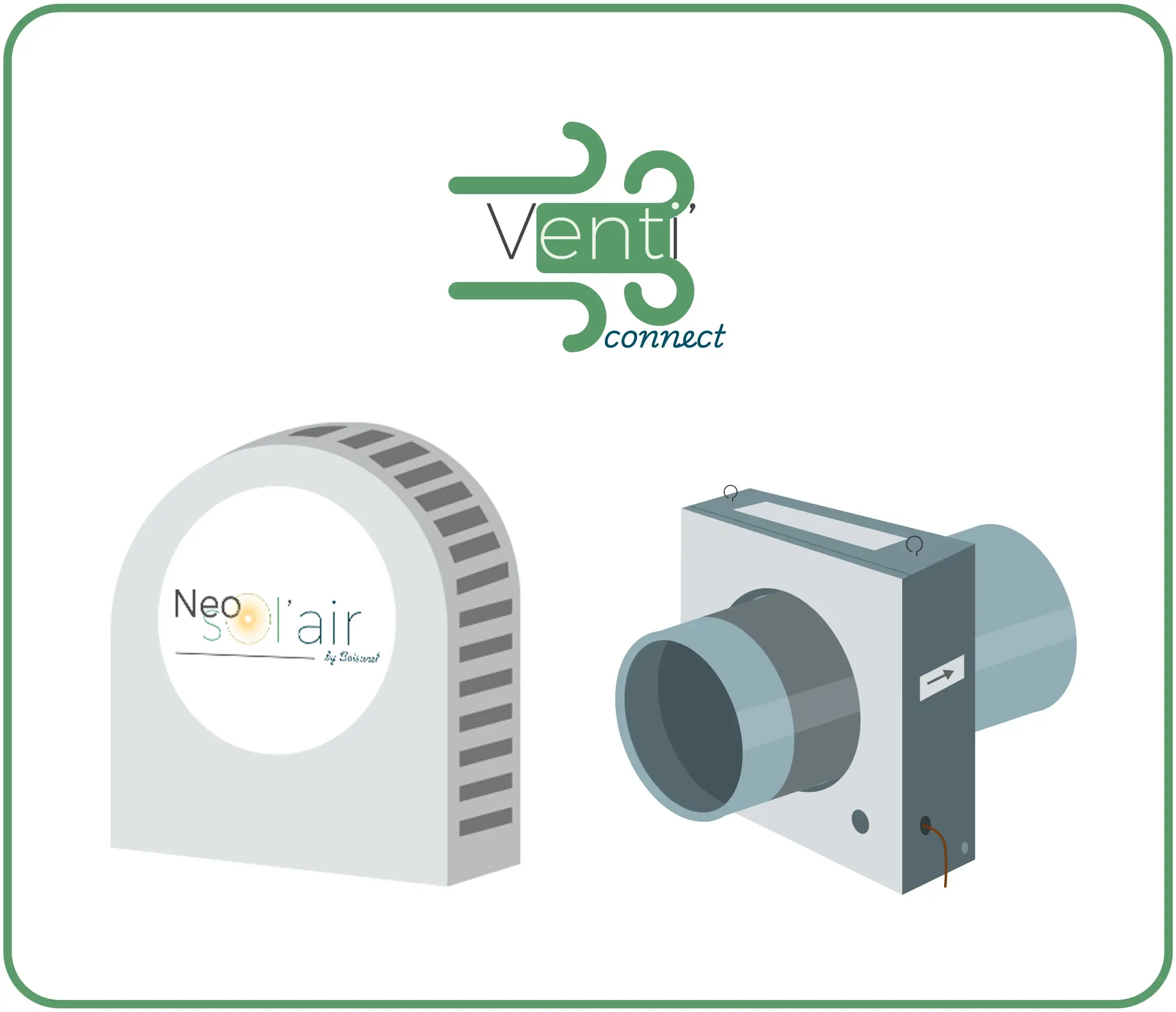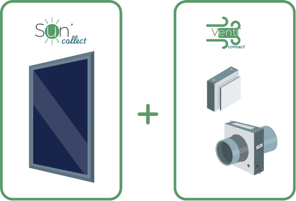 Pour aller plus loin, associez Venti’connect à un collecteur solaire Sun’collect : vous profiterez d’un air chauffé gratuitement par le soleil, pour une solution encore plus économique et écologique.