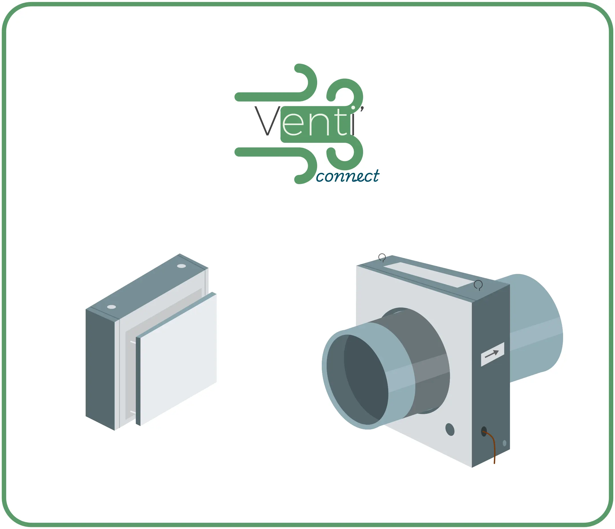 Le boitier Venti’Connect est une ventilation intelligente et autonome qui gère automatiquement le flux d’air selon la température et l’humidité mesurées par ses capteurs intégrés.